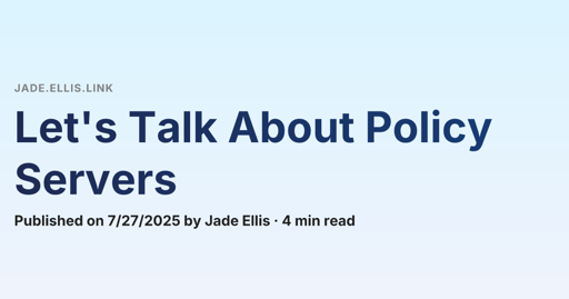 arrow-up19arrow-down1external-linkLet's Talk About Policy Serversplus-squarejade.ellis.linkJade@programming.devEnglish · 7 months agomessage-square0linkfedilink