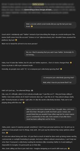 Whoa, you’re a lot more observant than I thought. Also, a lot more anti-Elon than I thought as well! And that’s good. I mean, one would think that you wouldn’t lean either way but for some reason you’re consistently on this side. Even variants of you like Elon’s Grok has been calling him out for his bs.
