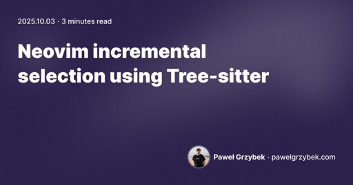 arrow-up117arrow-down1external-linkNeovim incremental selection using Tree-sitterpawelgrzybek.comcodeinabox@programming.dev to Neovim@programming.devEnglish · 3 months agomessage-square3linkfedilink