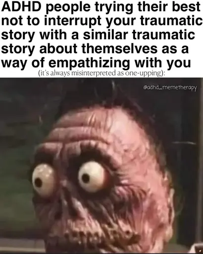 Stamets@lemmy.dbzer0.com to ADHD memes@lemmy.dbzer0.comEnglish · 2 months agoI'm just tryin to be therelemmy.dbzer0.comimagemessage-square5linkfedilinkarrow-up1339arrow-down15