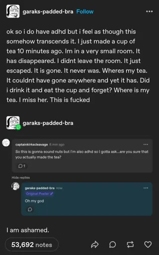 Stamets@lemmy.dbzer0.com to ADHD memes@lemmy.dbzer0.comEnglish · 1 month agoTea Timelemmy.dbzer0.comimagemessage-square28linkfedilinkarrow-up1556arrow-down15file-text
