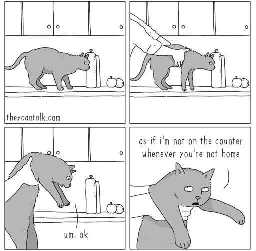 I know my cats are on surfaces they’re not allowed to when I’m sleeping or away. But why do they have to be disrespectful and do it in front of me!?