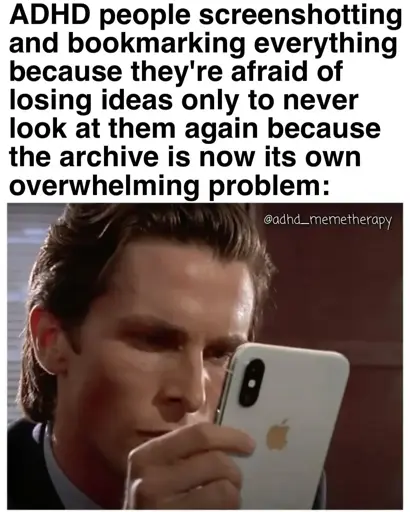 I realized that even if the archive is unwieldy, the act of saving satisfies the itch. So I’m not saving to necessarily look at it later. I’m saving so that the annoying part of my brain fucks off and I can enjoy my day in peace.