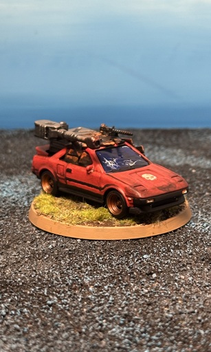 This car is going to be a Christmas gift for someone who didn’t play Gaslands but likes the custom cars. It’s magnetized to the base so it can be displayed standalone.