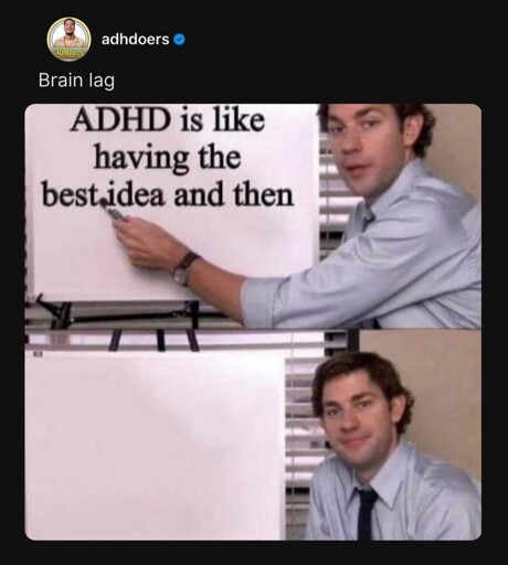 Had a great idea, tabbed out to write it down, dissociated for 5 mins trying to remember why I tabbed out, gave up in frustration, and the same instant I loaded back into what I was doing before I remembered my idea. Just happened to me a few minutes ago, 2nd time was the charm though