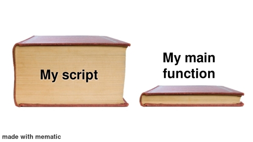 It was literally like that. I had a script of about 310 lines and the main function was like 10-20 lines of code. I had a very nice Setup of objects that handled all functionality possible behaviours independent and so my main function was just receiving a user input from another function and add accordingly which included like 3-4 different scenarios that are being handled in the main function.