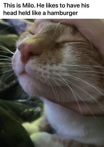 ickplant@lemmy.world to cats@lemmy.world · 14 days agoMiloburgerlemmy.worldimagemessage-square11linkfedilinkarrow-up1437arrow-down14