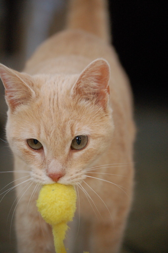 My handsome boy has a toy fish he brings to me. Well, he brings it wherever he sleeps and sometimes that is on my legs. Sometimes he just brings it to me. He really likes that fish.