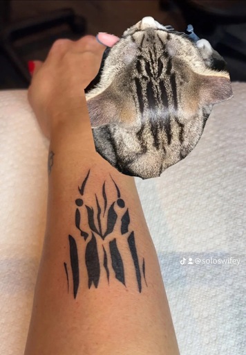 Weird how, on the cat, you have ⚫ ⚫ and then 3 tiers of stripes, but on the tattoo, they only do the top 2 tiers, leaving out the one on the bottom…