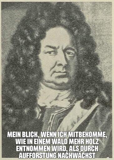 Haha jetzt wo dus sagst :) Ne das ist Hans Carl von Carlowitz, ein Typ, der Ende des 17. Jahrhunderts eigentlich aus dem Bergbau kam. Da man für Minenbau und bei der Verhüttung ernorme Mengen Holzkohle gebraucht hat, hat beim ihm die damalige Auswirtschaftung der Wälder wohl Stirnrunzeln ausgelöst. In einem später oft zitierten Werk über Forstwirtschaft hat er, soweit bekannt ist, zum ersten mal überhaupt das Wort Nachhaltigkeit in die Welt gesetzt.