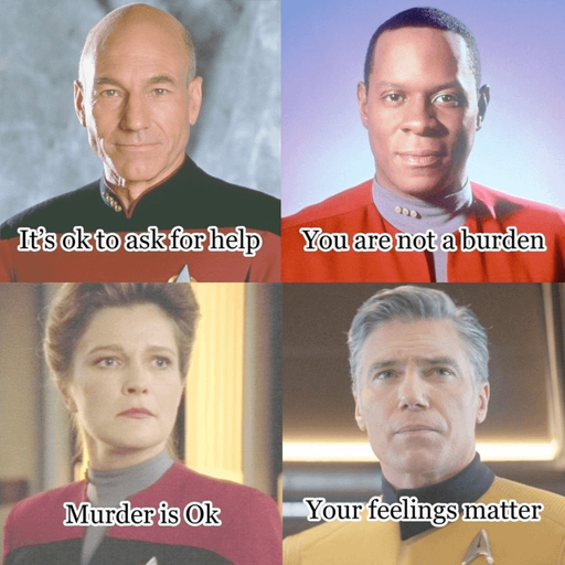 arrow-up1466arrow-down1imagePositive affirmations from your favorite captainsstartrek.websiteJames R Kirk@startrek.website to Risa@startrek.websiteEnglish · 12 days agomessage-square61linkfedilink