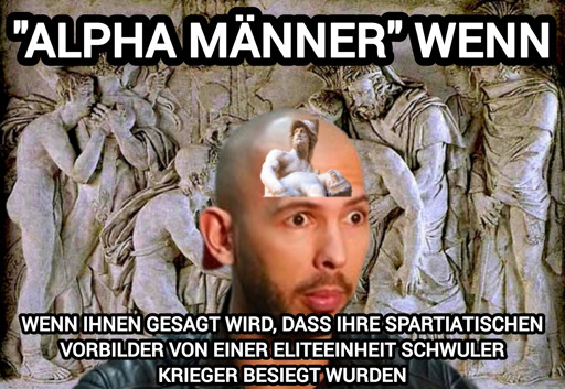 Die Vergötterung der spartiatischen Kriegerkultur ist unter „Alpha-Männern” und in der Manosphere weit verbreitet. Eine weitere lustige Ironie ist, dass Anhänger und Verbreiter einer solchen homophoben Ideologie eine Kultur vergöttern, die von einer explizit schwulen Kriegereinheit besiegt wurde.