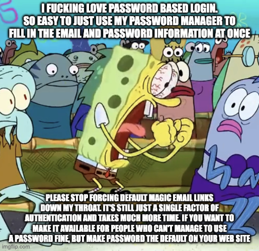 Ok, I think I get what you’re saying. You mean have a different form input without the password, like how it’s done here: https://eu.app.orcasecurity.io/login? I guess that’s one way to do it, but it’s not really intuitive from a user perspective, since the first thing you see is a password field, and then think you don’t have access because you don’t have a password. This one comes to mind because I have had to tell people to click the tab for the email only field, not email and password.