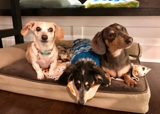 Evey, Lou and Mulligan. Evey is my spirit animal now. Lou was a rescue, as you can tell from his mismatched vibe, he didn’t come from a happy home, but we fixed that, he’s five months old here.