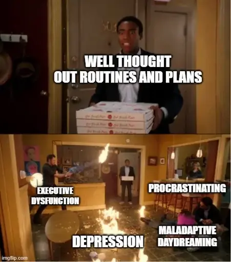 Listen, grown adults with grown children were about to convince themselves that, not only is it socially acceptable to leave the house with a diaper on over their pants to support a political candidate, but it’s worth photographing amd uploading to social media. Surely I can convince myself that to reach a goal such as: having a cleaner house, or having a healthier body, or playing an instrument, I just need to do a little bit every day towards that, marked out on a daily schedule I built for me.