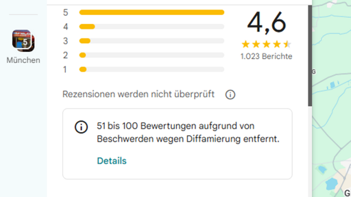 Seit Kurzem kann man auf Google Maps sehen, wie viele Rezensionen auf den Seiten der Restaurants, Frisöre, Fahrschulen oder anderen Unternehmen, entfernt wurden. Macht es da noch Sinn, auf die Sterne zu achten?