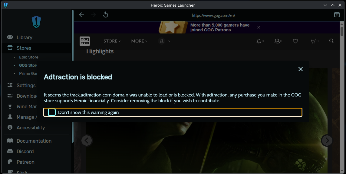 Yeah, there’s a notice that “adtraction” is blocked if you have some sort of dns level ad blocking in place.