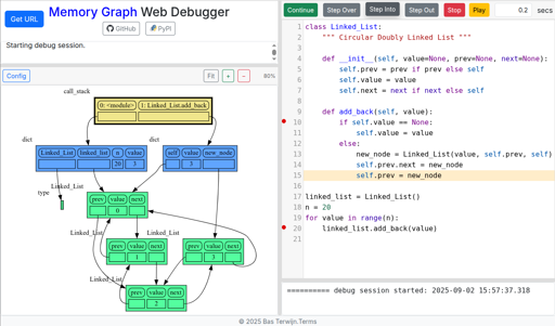 You can just write your code and then press “Get URL” to get the link: https://memory-graph.com/#code=def+fun(a+%3D+[])%3A ++++a+%2B%3D+[1] ++++return+a fun() print(fun())+%23+[1%2C+1]