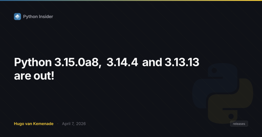 Python@programming.dev•Python 3.15.0a8, 3.14.4 and 3.13.13 are out!